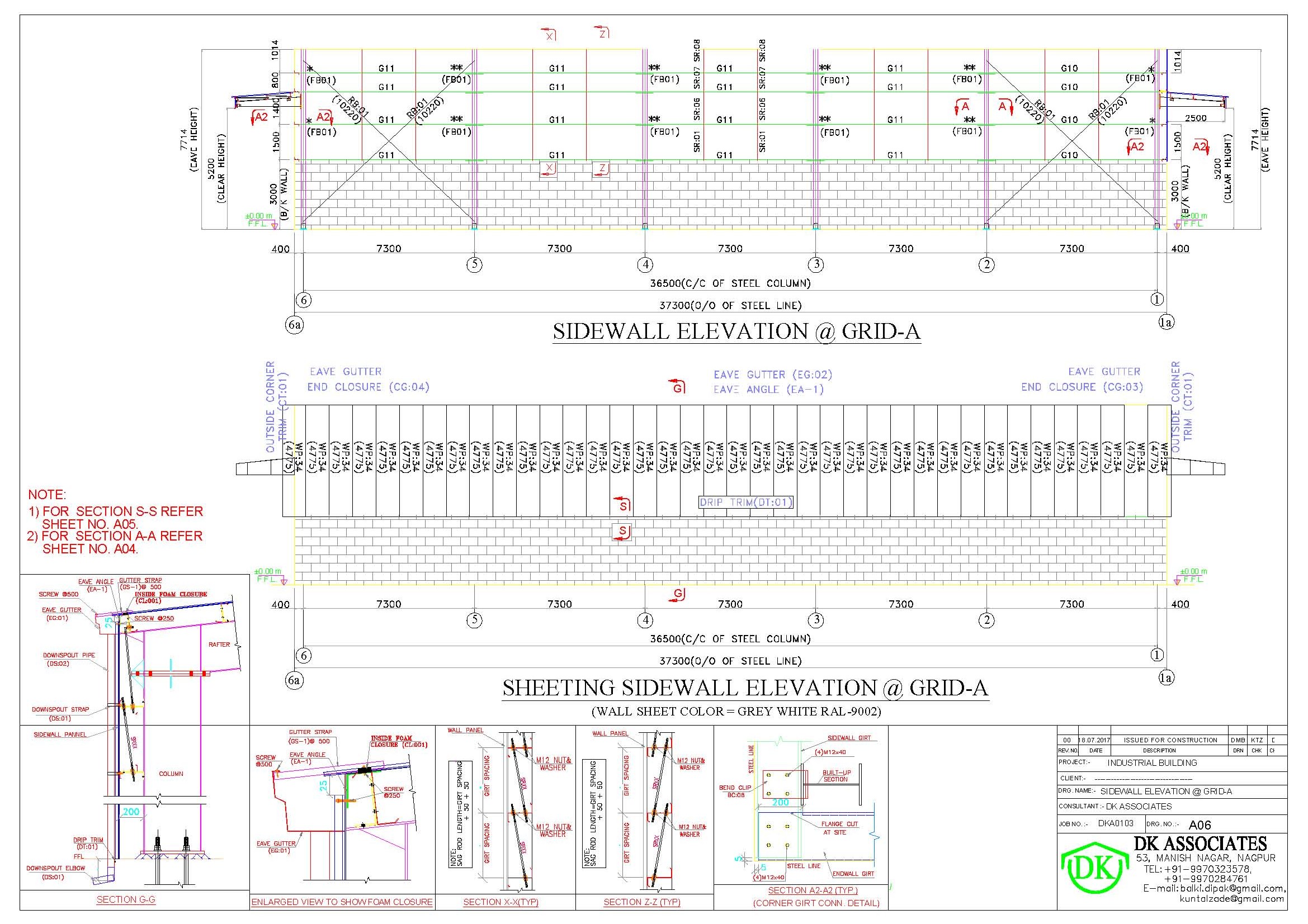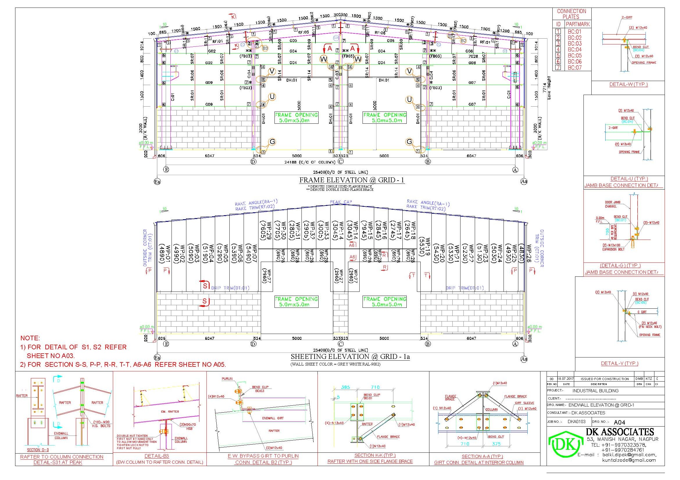 Sidewall framing & sheeting elevations